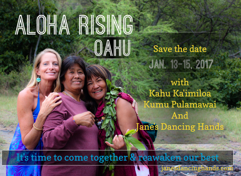 ALOHA RISING, OAHU is coming Jan. 13 – 15, 2017. Details are being added to the website. Interested in attending? Please write to Suzi at angel@old2.janesibbett.com if flying in or Pulamawai if you are a kama’aina (local.) This is going to be special in a whole different way!