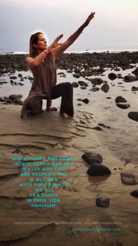 Because there was a call to the world to create prayer vigils as part of an International Vigil for Standing Rock and the Water Protectors last weekend, with the help of my daughter, Ruby, we created a special Jane’s Dancing Hands Circle on our Sparkling Circle Facebook Live for the International Vigil for Standing Rock and others to join in with their own prayers for protection of our most precious resources – water, land, and human spirit. You can still join us in this ongoing prayer for planetary healing with peace and harmony for all. This link remains up and free to join and has been a potent connection for the “heal the mother and thereby the child” school of thought as we are all children of Mother Earth. Please sign in, share your prayers on the event, share it to your pages, and empower our harmony. Thanks…..
