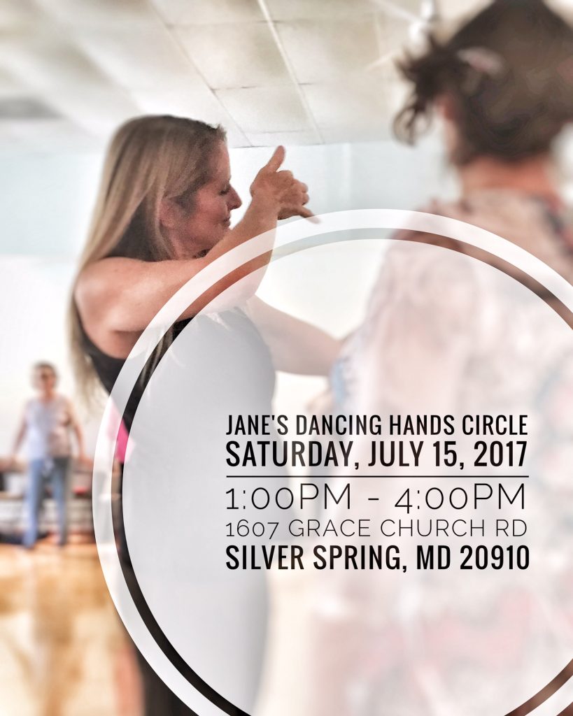 We are so excited to announce that Jane’s Dancing Hands Circle is returning to Washington DC Saturday July 15, 2017!