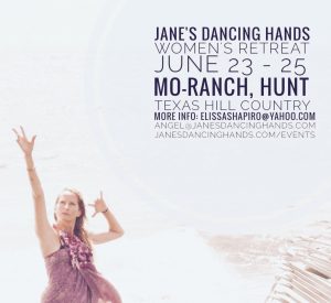 Want to feel this amazing Texas high heart heat? We are less than two weeks away from Jane’s Dancing Hands Awake from the Slumber All Women’s Retreat in Texas June 23 – 25. There will be four Jane’s Dancing Hands Circles, writing, singing, dancing, art, sacred movement and more in a supportive and sweet collective of co-creative purest Source energy flow. So many here have rebirthed in many lives bringing inspiration to many and that’s why we’d like your heart, hands and soul to join us in the beauty-light expansion. If ever there was a time on this earth for the Divine Feminine wonder-women to dance shoulder to shoulder for the collective highest and best good, it is now!