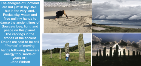 From first dance, the energies in Scotland were so strong for Jane’s Dancing Hands, the Pura Vida of the land, took Jane’s hands joyfully and with Source energy as always leading, it literally danced them into the sand on the shores of the North Sea creating beautiful patterns over and over again, much like a mini crop circle or complicated petroglyphs. From Dancing Hands to the Language of Love that comes from the G*d that created the universe, and now to the Dancing Sand Glyphs this adventure of trust in the best and highest good continues.