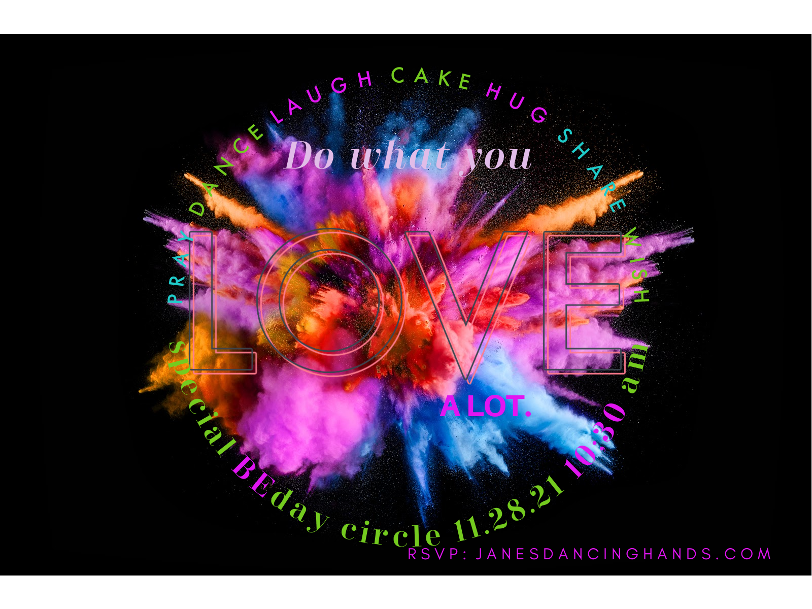 Pray, Dance, Laugh, Cake, Hug, Share & Wish Come join use for our JDH Special BEday Circle on Nov. 28, 2021 @ 10:30am Pacific FOR TICKETS: https://old2.janesibbett.com/product/special-beday-circle/