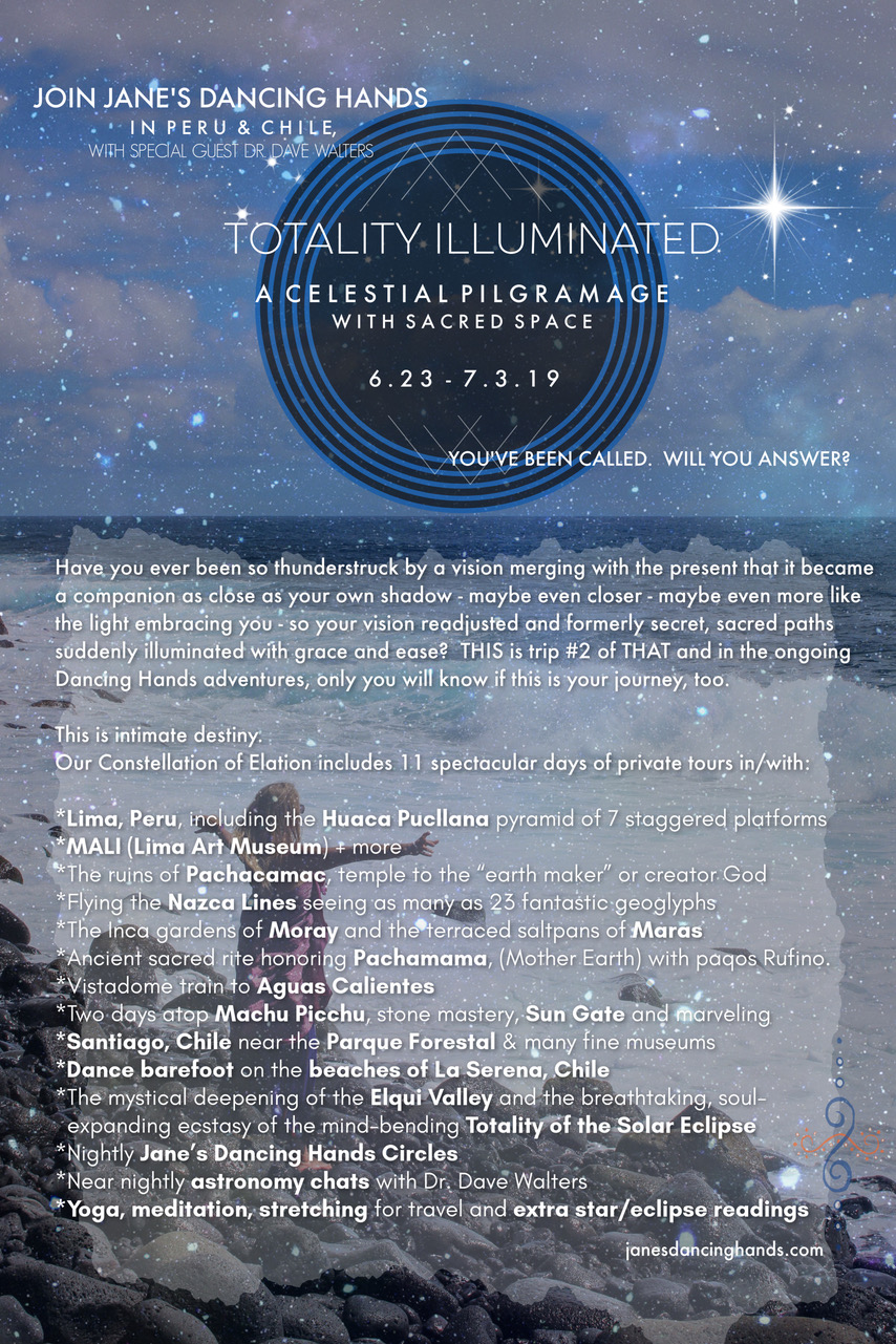 We are traveling for 11 days with an intimate group of under 20 people. This allows ease of travel and daily/nightly dancing with the gift from purest Source energy that running through Jane’s Dancing Hands, voice, eyes, whole body, spirit, and heart